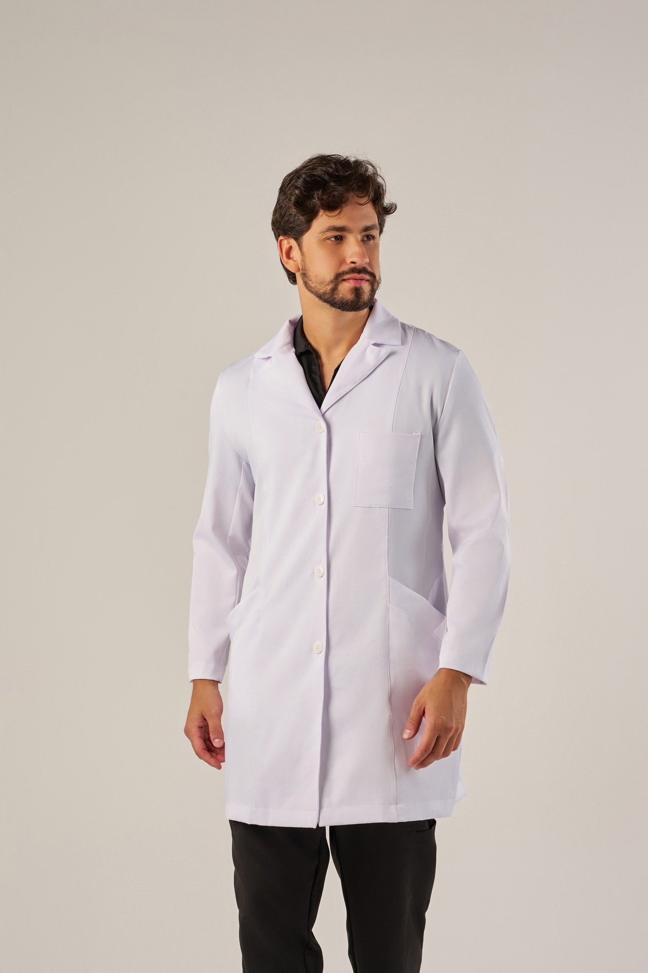 O Jaleco Classic Masculinoé confeccionado em gabardine premium e tem como composição 94% poliéster e 6% elastano, oferecendo durabilidade e toque suave.