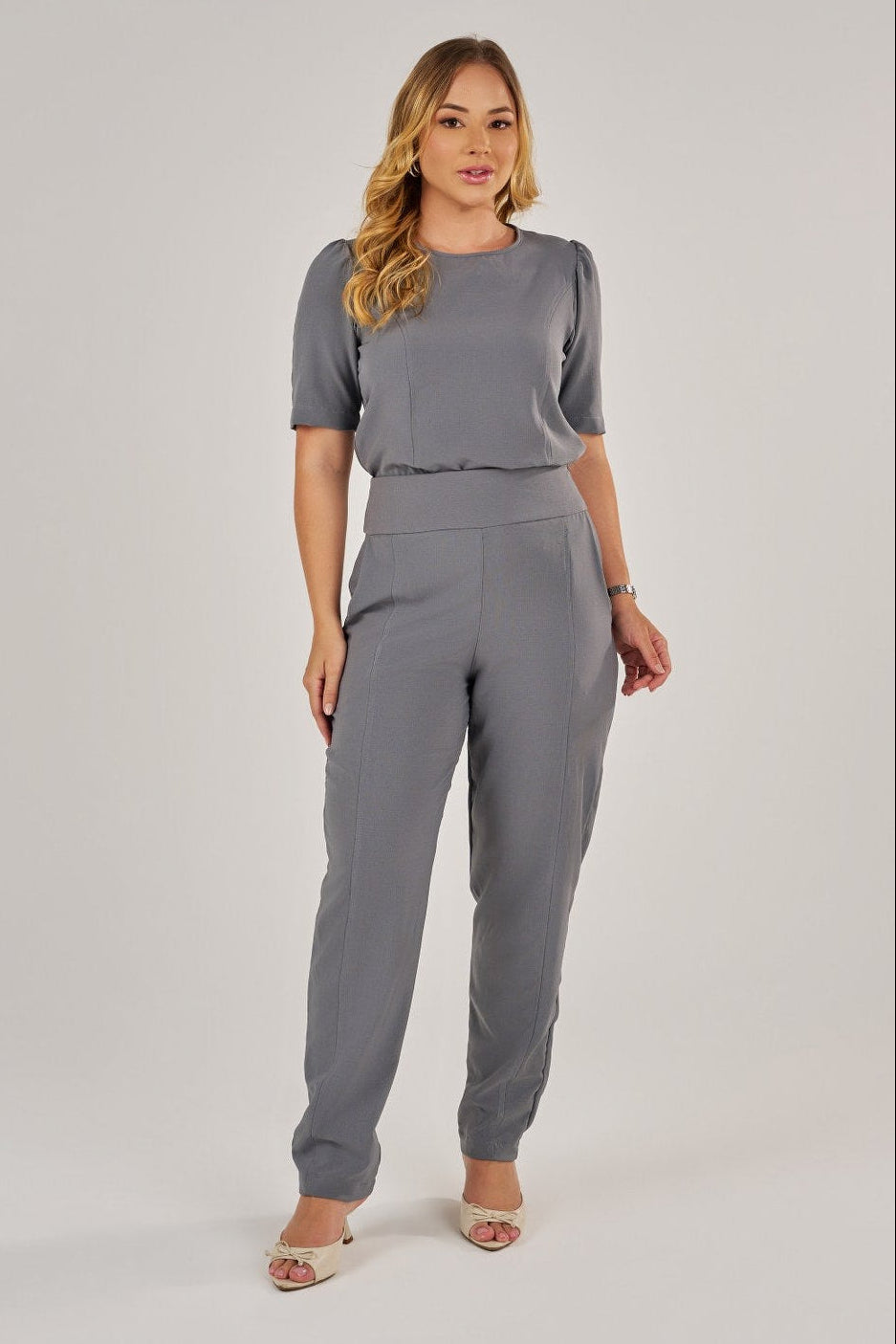 Com detalhes minimalistas e elegantes, a blusa apresenta gola redonda com fechamento em botão traseiro e mangas levemente alongadas, trazendo um ar refinado e moderno. A calça, de modelagem reta e slim, possui fechamento em zíper lateral e Perfeito para quem busca conforto, praticidade e um visual arrumado que transita facilmente entre o consultório e o fardamento do dia a dia.